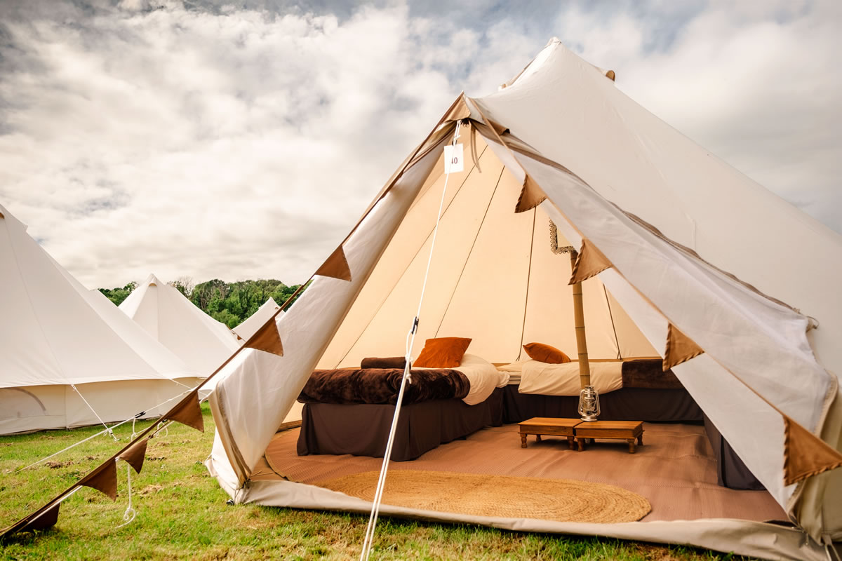 Premium Comfort – Our 65 luxury 5-m Bell Tents are fully furnished to offer an exceptional glamping experience. Each tent includes: